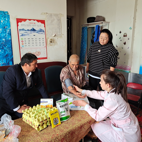活动现场,社区服务中心人头攒动,络绎不绝。义诊医护人员为每一位前来就诊的社区居民提供免费量血压、测血糖、健康咨询,耐心地询问居民身体状况,解答居民的各种疾病问题,对其健康症状进行讲解并给予饮食建议,让他们及时了解自己的身体状况及相关疾病的预防,并耐心细致的为前来就诊的村民讲解各种常见病、多发病的预防知识,并根据群众的检查情况,给予针对性的预防和治疗方案,免费发放药品。同时,还向参加义诊的群众讲解医保知识。社区居民玛丽艳木·亚森刚做完检查,笑着对工作人员说道:“医疗服务进社区,真是方便了老百姓。家门口就能看病,暖心又贴心。这次义诊活动真是太棒了,尤其是像我这样不方便出远门的老人,这种活动越多越好。”此次义诊活动,共看诊100余人次,发放药品100余份。同时医疗保障局干部和医护人员在社区干部的指引下来到两户行动不便,体弱多病困难群众家中,上门为老人测血压,送去药品和生活用品。活动得到社区居民的一致好评,他们纷纷表示:参加义诊活动不仅对自己的健康状况有了进一步了解,更感受到了来自党和政府的关怀和温暖。