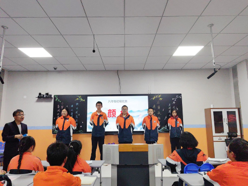 本次活动分为初赛和决赛两个部分,由七、八年级各班推选优秀学生参加初赛飞花令淘汰赛。在初赛环节,七年级学生以“春”为主题,根据情境说飞花,考察识记、理解、运用能力;八年级学生以“颜色”为主题,进行飞花车轮赛和现场鉴赏赛。脱颖而出的前六名班级,各班派四名代表参加决赛。