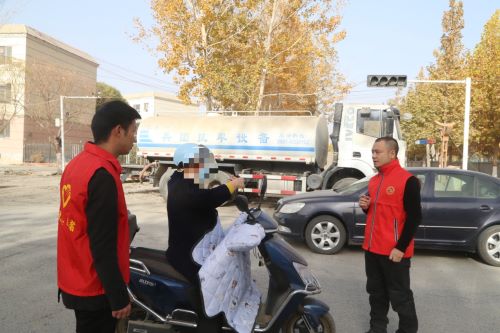 随后,志愿者对附近的商户和过往行人宣传了安全交通知识,路过的张大爷说“经常看到有人骑车不戴头盔,一辆车载好几个人,路过农贸市场也不减速,每次从这走都提心吊胆的,你看看你们来了,过往的车辆都自觉减速了,这样的活动应该多搞几次。”