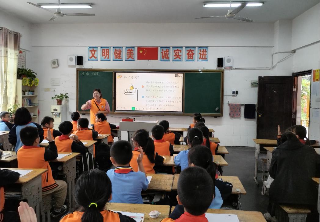 本次活动包含了心理健康知识宣传、问卷调查、现场反馈几个环节。活动中王老师从“我从哪里来、你了解自己吗、人生三件事、改变心态的秘诀、如何让自己的心情变好、调节情绪的三大绝招”六个方面,让孩子们真正了解了如何调节自己的情绪,做一个心理健康的使者。