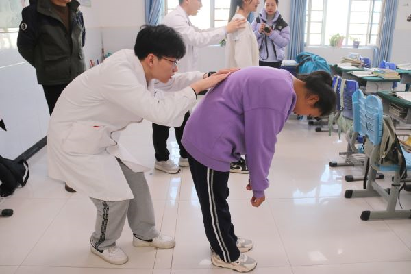 活动现场,医务人员通过视诊、触诊、仪器测量等方式,为每一名学生进行详细的脊柱检查,检查的同时为学生们讲解脊柱健康知识,指导学生纠正不良姿势,倡导养成良好的学习、生活习惯,加强针对性康复运动,预防脊柱侧弯发生。医务人员并将所查项目记录在检查报告单中,对个别同学出现的健康问题,及时与老师沟通,并给予家长反馈治疗意见,让老师和家长及时发现和了解学生视力及脊柱健康情况,对不同学生实行分类指导和管理,方便家长了解情况,能够及时采取针对性措施,提高综合预防和治疗效果。