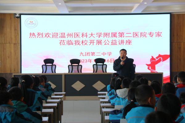 为提高青少年眼健康水平,指导学生和家长正确保护视力和脊柱健康,养成健康生活习惯,11月16日,温州医科大学附属第二医院一行10名专家赴九团第二中学开展青少年近视预防、脊柱侧弯预防公益讲座和青少年近视公益筛查活动。