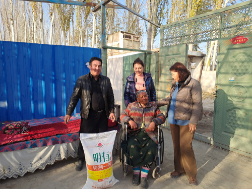 当我们把慰问品送到吉米兰·麦皮孜老人家,准备奔赴下一户时,老人小跑急返屋里端出一盘又大又红的苹果,硬是塞到队员手里,不拿不让离开,这一幕深深的触动了我们在场的每一个人,虽然是一个苹果,但却代表着群众淳朴的本质和真心的感激。