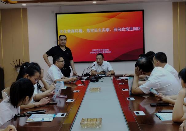 在企业办公室座谈会上,医保局志愿者结合医保政策法规,对企业治理结构、人力资源管理、民商事合同、安全生产经营、法治环境保障、诉讼与仲裁纠纷等进行全方位解读,工人代表连连点头。