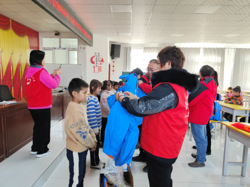 中午1点,启动仪式在《爱的奉献》的感人旋律中准时开始。见到温暖包已经搬上了舞台两侧,孩子们欢呼雀跃,奔走相告。驻村工作队队长、第一书记李祥燕致答谢辞,表示一定会把公益组织的这份大爱和力量传递给每一位孩子,传播“温暖包”的公益理念,化作实现新时代跨越发展的奋斗动力。