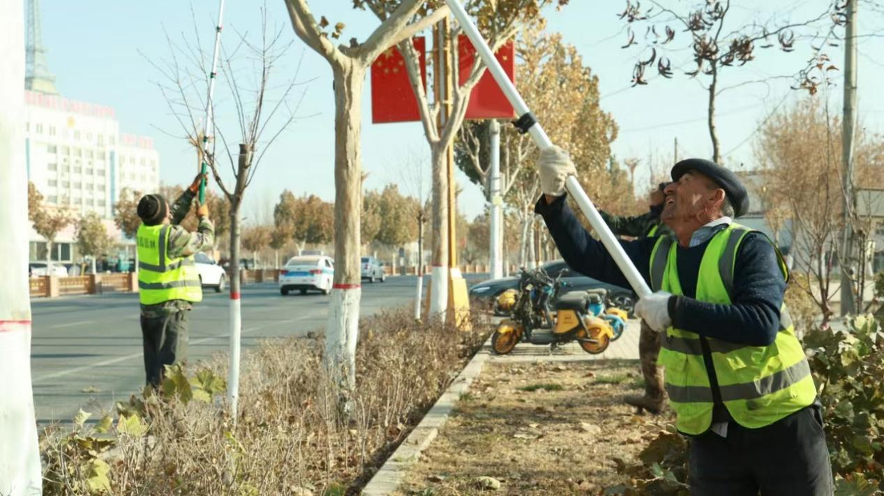 “树木剪枝也是冬季管护的主要工作,我们通过清除干枯枝、病残枝,集中养分,帮助树木安全过冬,提高存活率。”库车市园林办负责人冯新胜。