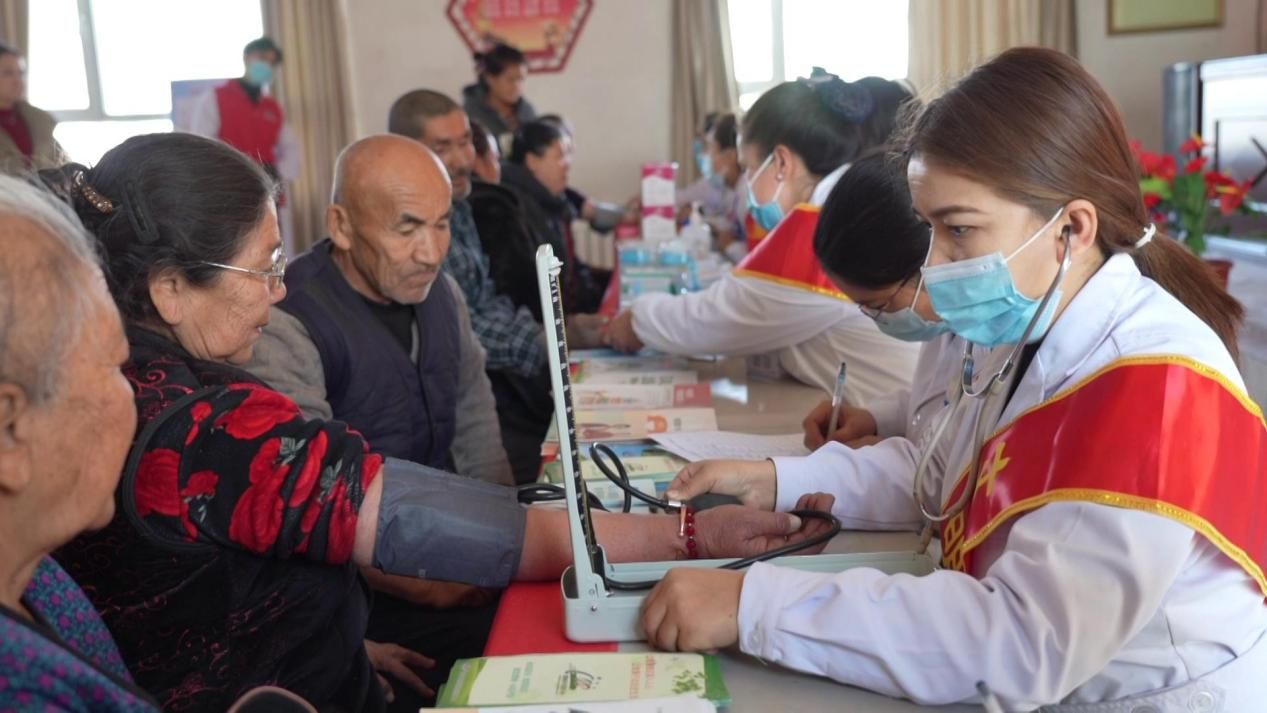 义诊现场,前来检查的群众络绎不绝。医护人员细心地为他们测量血压、血糖、心率和血氧饱和度,并根据检查结果、既往病史、生活状况等方面提供健康咨询、诊疗建议和用药指导等服务,现场为群众发放药品。(库车市融媒体中心:歹淑丽)