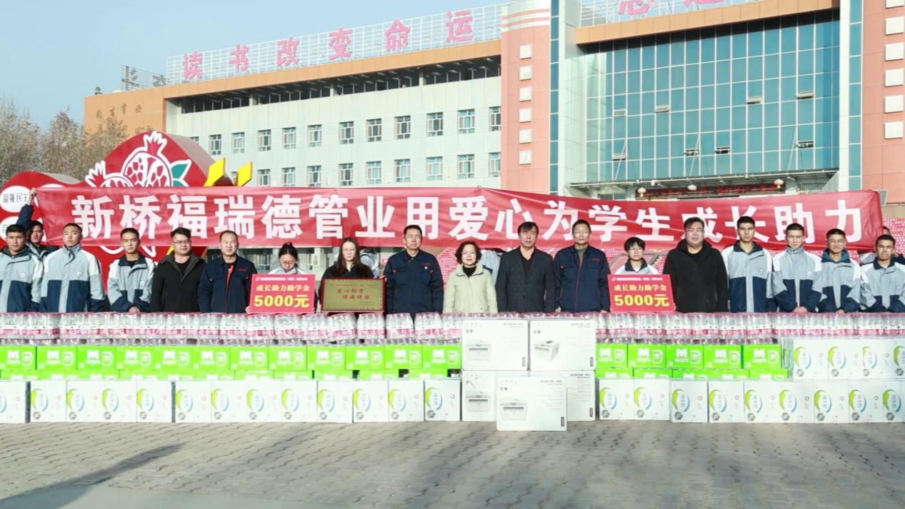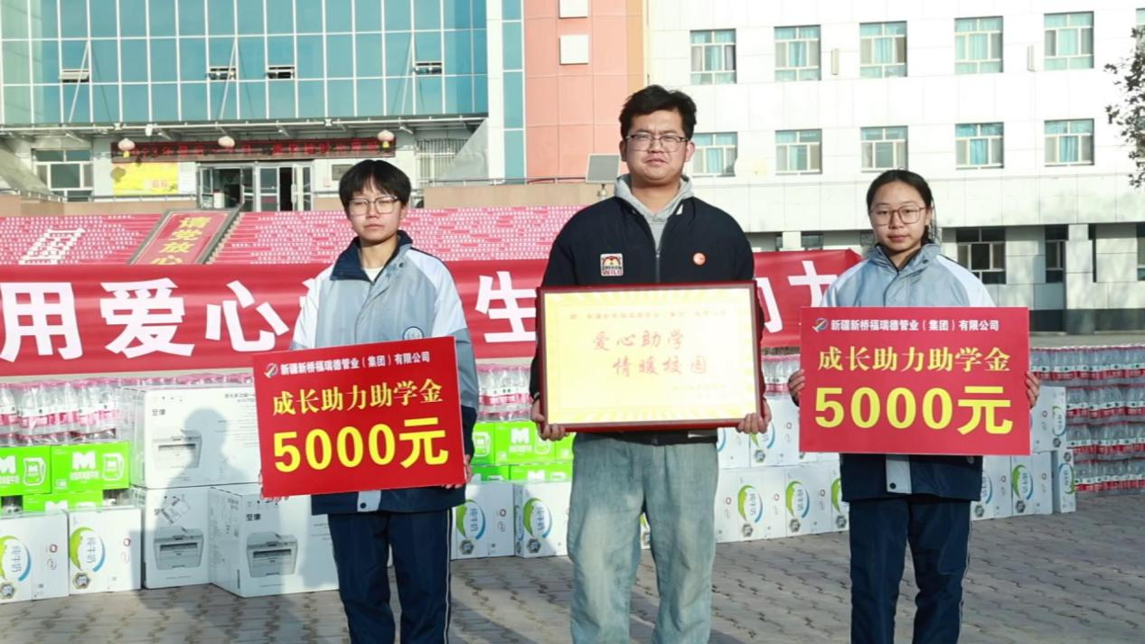 多年来,库车新桥福瑞德管业集团有限公司作为一家本土爱心企业,在自身发展的同时,始终不忘践行社会责任,勇担“护航梦想、奉献社会”的时代使命,热心教育事业,持续在学校开展了爱心助学、助教捐赠活动,都得到了库车市社会各界的一致好评。在本次捐赠仪式中,爱心企业为库车市第四中学捐赠的助学、助教金共计60000元,其中包括2名家庭困难学生每人发放助学金5000元及捐赠4台教学打印机等教学设备。