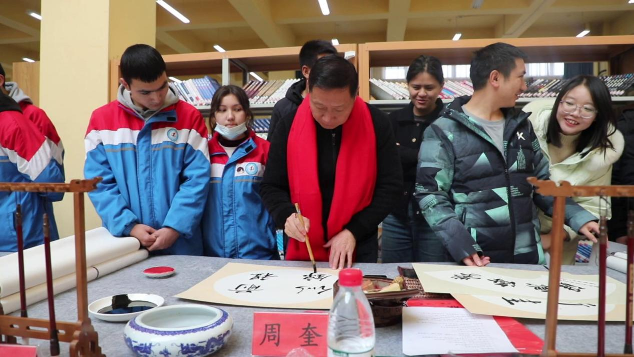 12月23日,新疆阿克苏地区书法家协会、库车市政协书画院、库车市慈善协会、库车市文联、库车市社科联在库车市第一中学开展翰墨铸魂·同心向党—“文化润疆校园行”活动。以文润心,书法润教,增强中华文化认同,铸牢中华民族共同体意识,