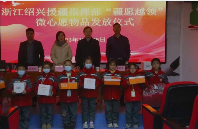 “小小微心愿,传递大温暖”。2023年12月25日,七团党委常委、副团长,绍兴市援疆指挥部党委副书记、纪委书记、副指挥长顾恺,七团党委副书记、副政委、妇联主席、工会主席张小云,七团社会事务办公室负责人陈艳军,七团中学副校长唐新民,七团中学政教处主任李波及此次受捐赠的100名学生于七团中学阶梯教室进行了“疆愿越领”绍兴市援疆指挥部微心愿物品发放活动。