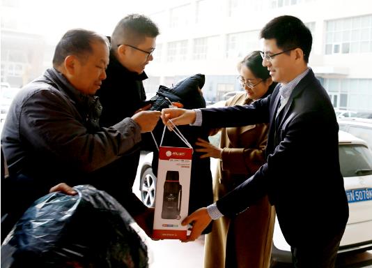 活动中,第一师医院党委书记管永虎,党委副书记、院长陈大进,党委委员李英及工会委员们在医院医技楼前,为综合治理办公室、门诊部(陪检组)、电工班 、维修班、勤杂班 、污水站等96名在室外工作人员送上了热水壶、电暖气、羽绒马甲、护膝等御寒物品。