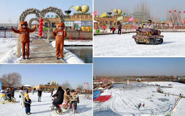 2023年12月31日,游客在阿瓦提县塔木托格拉克镇吐格贝希村刀郎小镇景区体验滑雪运动。元旦假期,该刀郎小镇景区吸引了众多游客前来打卡,感受冰雪运动的魅力,在喜庆的氛围中迎接新年到来。(阿瓦提县委组织部:包良廷)