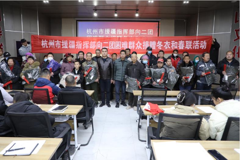 岁末年初,正值寒冬和龙年新春到来之际,杭州援疆指挥部把二团干部群众的冷暖挂在心头,不远万里把冬衣和春联寄到团场,赠送给困难群众,让困难群众感受到杭州人民的关爱与温暖。
