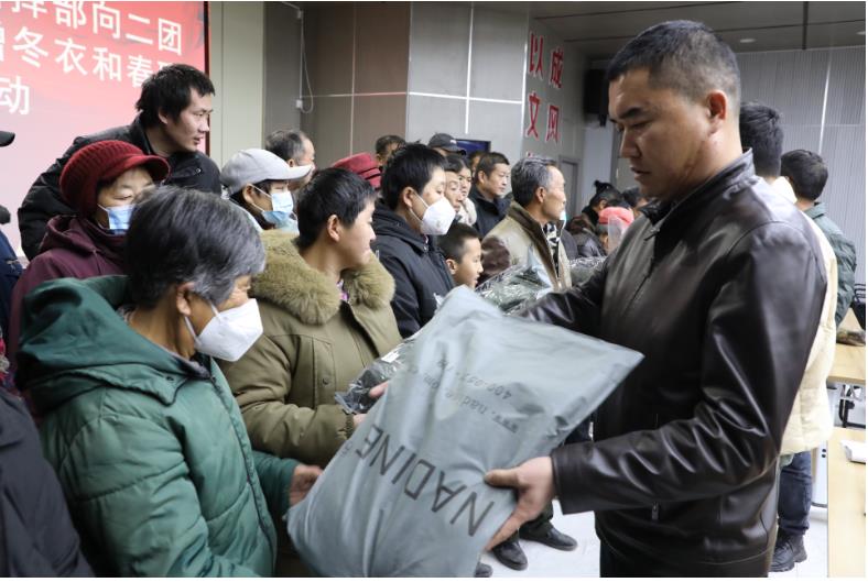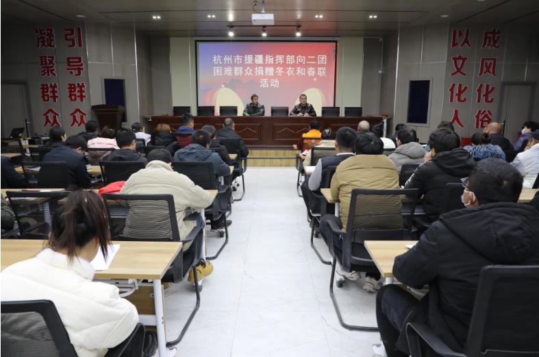 1月22日,杭州援疆指挥部向二团困难群众捐赠衣物和春联,为困难群众温暖过冬奉献爱心,给大家送上新春的祝福。