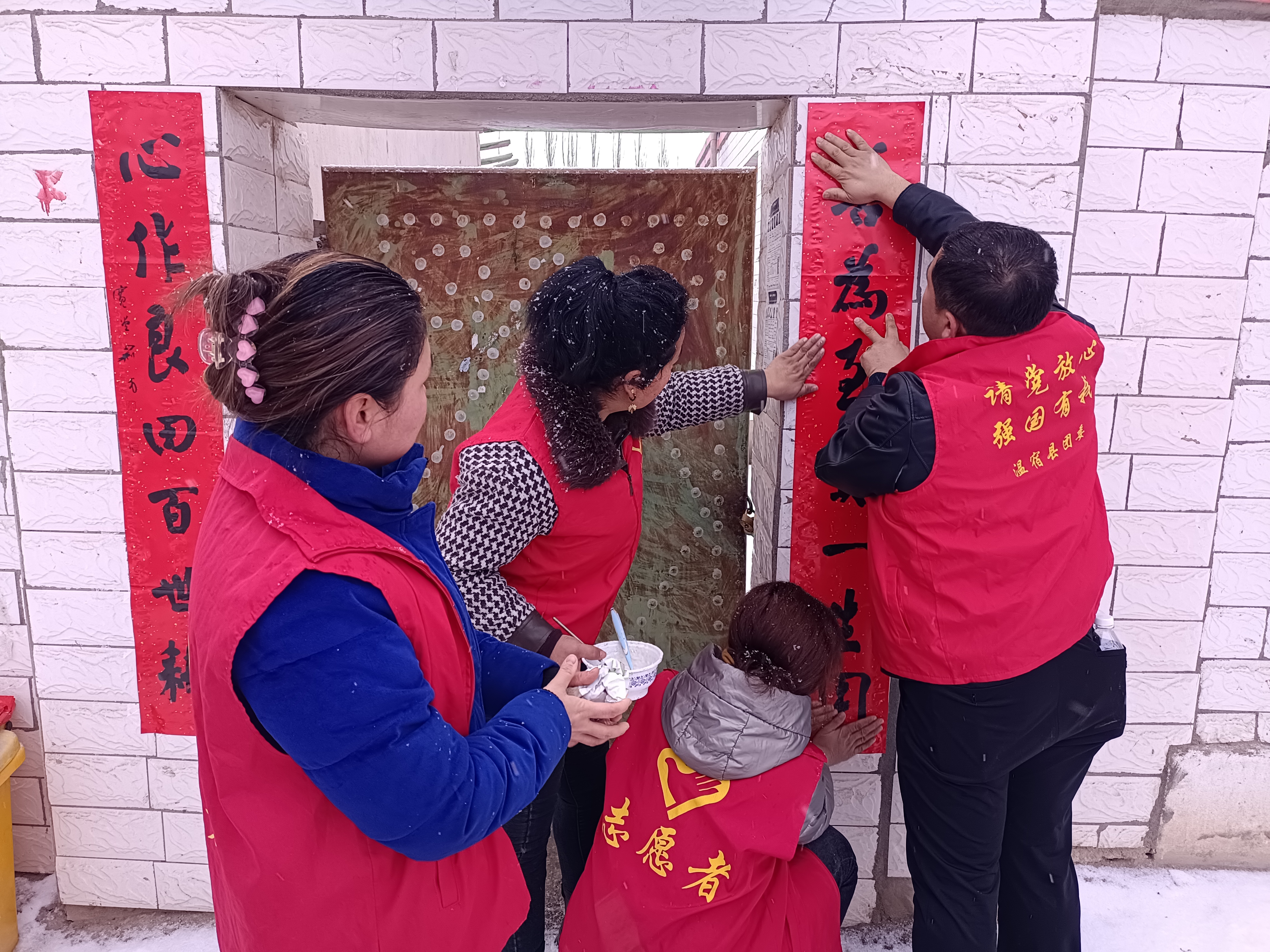 2月4日当天,村里充满了欢声笑语。党员志愿者们提前准备了一幅幅饱含着浓浓年味、饱含着对新年美好祝福的春联,然后走进村民家中,大家三五成群齐心协力将春联贴在他们的门楣上。每一幅春联都写满了祝福和美好的憧憬,村民看到后喜悦之情溢于言表。春联上的每一个字都仿佛跳跃着幸福的音符,为这个春节带来了更多的温暖与欢笑。