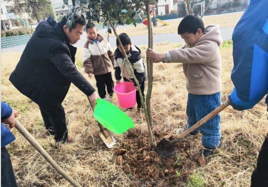 阳春三月,草长莺飞,植树添绿正当时。又是一年植树季,为了培养学生爱护环境,热爱绿色的意识,养成传播绿、栽种绿的良好习惯。枣阳市兴隆镇乌金完全小学在植树节来临之际,组织全校师生开展植树实践活动,老师和同学们一起在校园内挥锹铲土,为美丽校园添新绿。