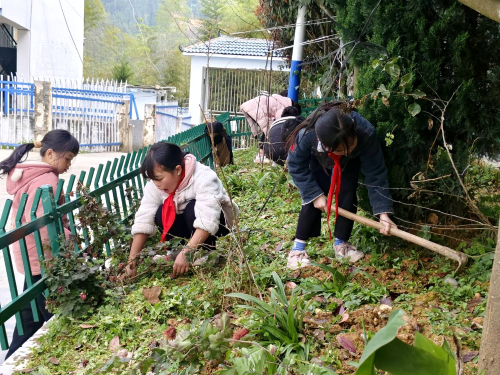 在活动中,全体少先队员在辅导员的带领下,扛着队旗,带着劳动工具,走进校园绿化带,分组进行了松土、修剪、浇水、清扫。整个场面热火朝天,呈现出一派有序而忙碌景象。鲜艳的红领巾满载着希望,他们一锹一铲,小心翼翼,为小树开辟了新的希望,辛勤的汗水滴入大地,与树苗约定了一同成长,整个校园弥漫着和谐美好的氛围。