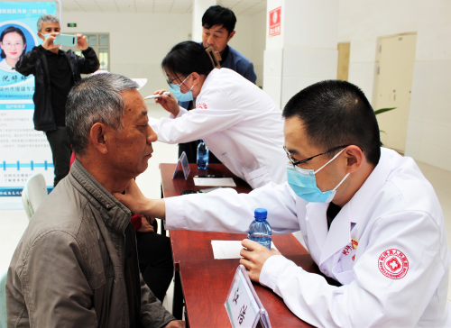 4月17日上午,在新疆阿克苏地区柯坪县人民医院援疆的浙江省湖州市医疗专家团队来到新疆生产建设兵团第一师三团医院,为当地群众开展了公益义诊服务。