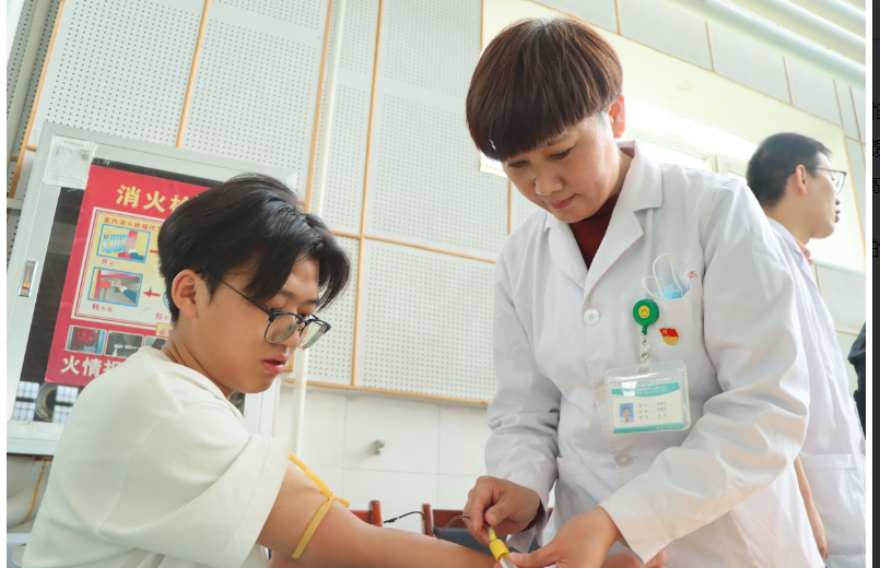 体检现场秩序井然,医护人员详细询问学生身体状况,做好每一项检查,认真记录体检结果。对害怕抽血而感到紧张的学生,现场医护人员耐心引导、暖心安抚;对身体不适的学生,及时给予诊治;对体检中查出的异常情况及时反馈,并提出进一步检查建议;医护人员还不时地向大学生普及健康知识,引导学生养成良好的卫生和生活习惯,受到学院和大学生的高度赞扬。