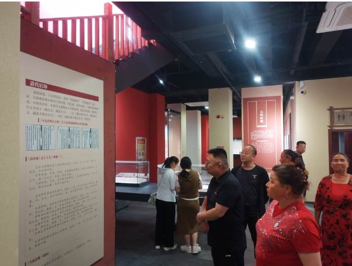 干部与结对亲戚们共同来到新疆第一家以印章为主题的博物馆——沙雅县新疆印章博物馆。“沙雅县是古龟兹的重要组成部分、古丝绸之路重镇。东西方文化曾在此交往交流交融,留下了不同历史时期的文化遗迹29处。乌什喀特古城是其中悠久而宝贵的历史文化资源,曾出土‘汉归义羌长印’及‘李崇之印’两件国宝级文物,是新疆历史变迁和发展的重要见证。我们是想通过这些印章文物让更多人了解新疆的历史文化,加强人们对多元一体的中华文化的认同。”解说员努尔曼古丽说。参观后,村民努尔尼沙深有感触的说:“新疆是祖国不可分割的一部分,通过今天的参观,我更好地了解了新疆的历史与今天幸福生活的来之不易,我将努力为做好民族团结贡献我的力量”。