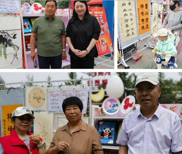 为了展现社区治理与服务成效,现场展示了社区日常收集的居民书法、绘画、手工艺品等作品,进一步提升了居民的获得感与价值感。社区志愿者们主动担任作品讲解员,为参观的居民介绍着每幅作品背后的故事。