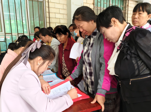 在三团医院,三团妇联各妇女干部及三团医院医务人员认真登记参检妇女信息,初步了解她们在乳腺和生殖健康方面的基本情况,并向每位参检者发放了“两癌”检查登记表。同时,三团医院的医务人员还为现场参检妇女同志发放了“两癌”知识宣传手册,让她们对“两癌”有了更深入的了解,为后续的检查流程奠定了基础。