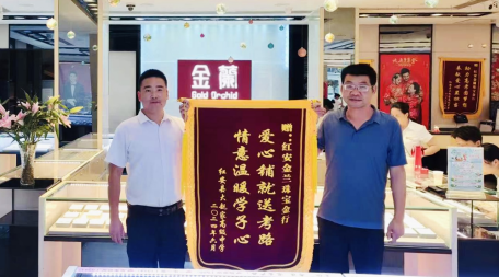 6月12日,红安县大赵家高级中学校长涂茂松一行专程来到红安金兰珠宝金行,将一面写有“爱心铺就送考路,情谊温暖学子心”的锦旗送到该店负责人手中,以感谢他们在高考期间“爱心送考”的公益善举。