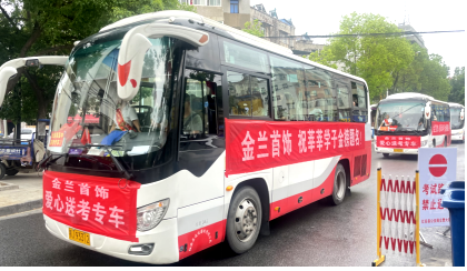 据悉,红安金兰首饰已连续4年为大赵家高级中学考生提供送考服务,爱心服务越来越细致周全,为广大考生提供了舒适、便捷、温馨的迎考环境,解决了乡镇学子考试往返交通安全难题,获得考生、家长、学校的一致好评。(大赵家高级中学: 程亲遥 )