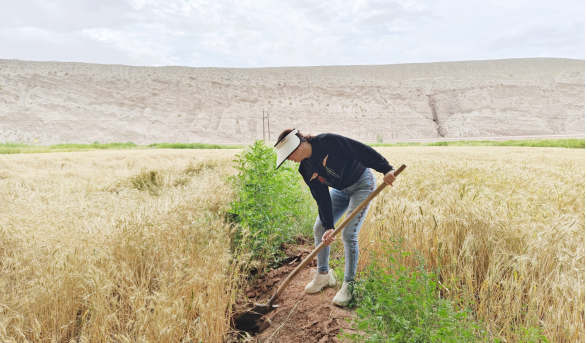 在玉米管理、小麦即将迎来收割的关键时刻,克孜布拉克村工作队、提坎库如克村工作队前往田间地头,帮助群众开展玉米地除草,施肥、喷洒农药,实地察看小麦长势、控水、鸟类啄食、野猪啃食等情况,指导群众进行科学防范,了解登记劳动力欠缺的家庭,落实帮扶,全力以付确保小麦在收割时颗粒归仓。(温宿县博孜墩乡驻村办: 文/兰晓明、图/西仁古丽、轩欢欢)