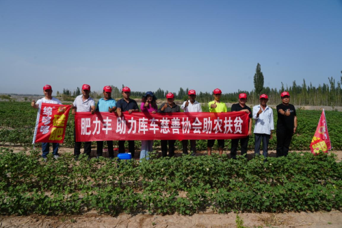 6月30日,在新疆库车市慈善协会协调牵线下,济南肥力丰生物科技有限公司来到库车市牙哈镇晨光村,为10户村民捐赠价值五万余元的有机液体肥2吨,助力棉田增产增收。