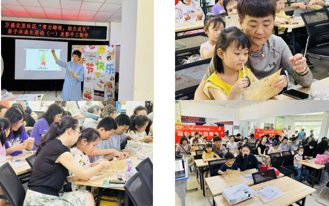 儿童节,万盛北里社区开展了皮影制作活动,带领孩子们零距离感受中国非遗文化魅力。非遗老师向孩子们介绍皮影戏的起源和发展,让大家了解皮影戏的历史和文化背景,使孩子们对皮影充满了好奇与期待。社工给孩子们发放皮影制作材料,并展示如何使用画笔和剪刀等工具制作皮影人物。在社工的指导下,孩子们开始动手制作皮影人物。孩子们在老师和社工的帮助下,尝试制作自己的皮影人偶。他们通过剪切、上色、拼接等步骤,不一会儿一个个形态各异、惟妙惟肖的人物皮影就做好了。每个孩子都全神贯注于自己的作品,展现出了极高的创造力和动手能力。