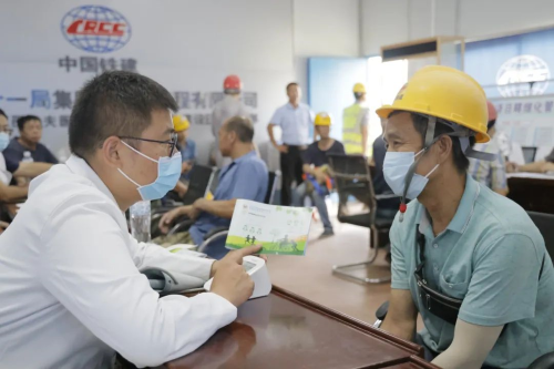 兵团首个国家区域医疗中心项目工程建设已临近尾声,为了广泛传递“给您真诚、信心和爱”的服务理念,让项目施工人员享受到邵医专家的优质服务,保证国家区域医疗中心如期投入使用,尽快惠及更多边疆群众,7月16日,在浙大邵逸夫阿拉尔医院党委委员、副院长毛坚敏,副院长黄美丽的精心组织下,医院护理团队走进项目施工现场,为中铁二十一局1000余名施工人员进行义诊活动,用实际行动关爱一线“建设者”的身体健康。