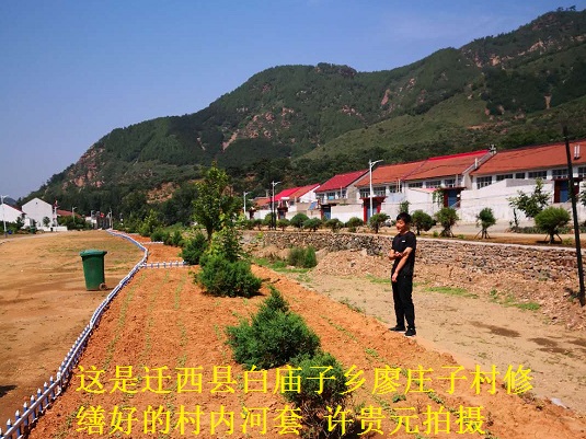 干部带头干、党员做示范、群众主动跟着干,不愁旧貌换新颜。在白庙子乡的廖庄子村,迎接我的村书记赵艳志邀我先到村部歇歇脚、喝点水、聊聊天。因为时间紧迫,我就让他带我先去看看贯穿村内的河套。记得5月中旬我来的时候,整个河套破烂不堪、杂草垃圾和碎石到处可见。想不到,现在足有500米长的河套,竟然全部砌筑了石头,进行了修缮和加固。老赵说,都是村里的党员干部带头,群众自愿参与施工和清理河套杂草垃圾,出钱、出工、出力、又出车,一个多月就基本完工了,并把沿着河道的空闲地,种上了花草,圈上了五颜六色的小围栏,没有伸手向县里、乡里要过一分钱。