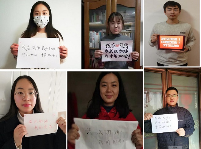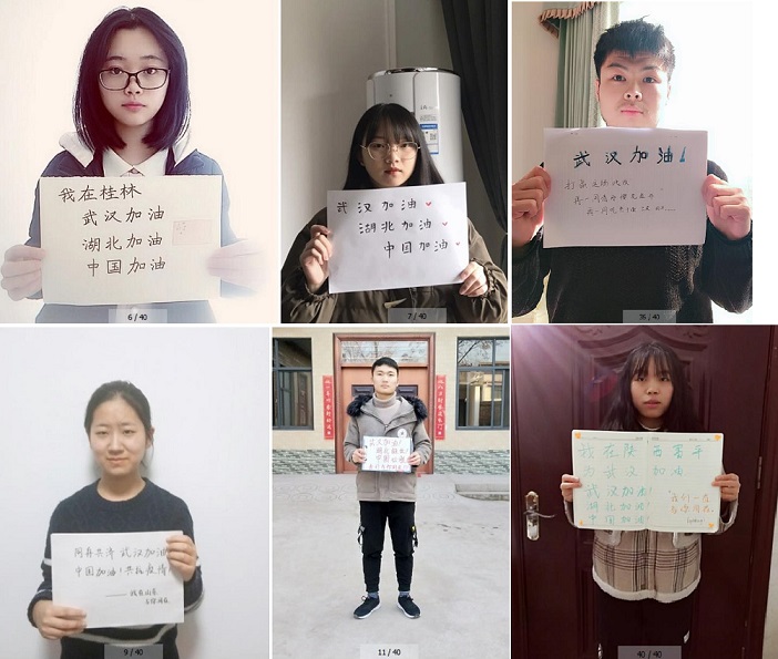 在这个时刻,我们无言以对,惟有祝福!湘潭大学商学院本科生电子商务与市场营销党支部的40余名党员在支部书记郭海洋老师的组织下,共同发声,为武汉加油、湖北加油、中国加油!以此公益祝福的形式,表达出对前线战士的敬意!通过师生来自全国各地的共同声援武汉,鼓励疫区人民的坚强意志和决心,消除恐慌,理性防疫。支部全体成员,时刻关注武汉的疫情动态,关心支部入党积极分子、发展对象的身心健康,相信齐心协力,必定共克难关。其中,支部党员裴敏鼓励说,“待到樱花烂漫时,再相会,武汉加油”;王田多姿提醒大家“少出门,勤洗手”等。