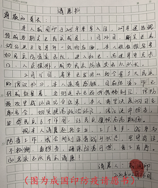 清风网讯(新吴区人武部 徐锐)“越是艰难越向前!我是党员,让我上!”这是无锡市新吴区民兵突击队队长成国印在上交请愿书时吐露的心愿。