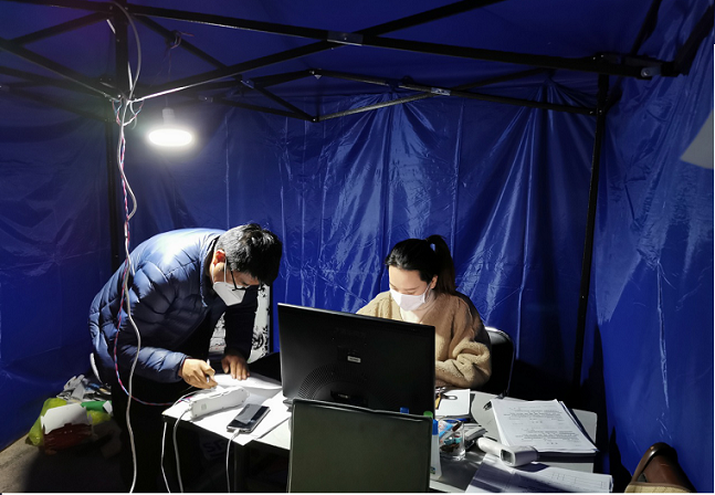 “你好,请出示证件并测一下体温,谢谢您的配合。”“你好,你们是刚刚回来的吧,到这边填一下登记表”。2月15日晚上10点05分,天空飘起了雪花,她依然坚守在小区门岗上。连日来,由于室外温度过低,温度计频繁报警,读不出数据。为了不耽搁进入人员的时间,同时确保测得准确数据,她把电子体温计及时放入暖手宝中,暖手宝没电来不及充电,她便放在外套内,用体温捂热温度计;有时人流量太大,她就一直用掌心暖着温度计的探头,时间一长,裸露在寒风中的双手开始变得麻木……。她说,“在这防控最关键的时候,作为一名入党积极分子,这时候都不积极,不挺身而出,怎么能经得起组织的考验和群众的信任。我年纪轻,苦点累点不算啥,我在小区最前沿守好家门,就是给居民最好的幸福。”