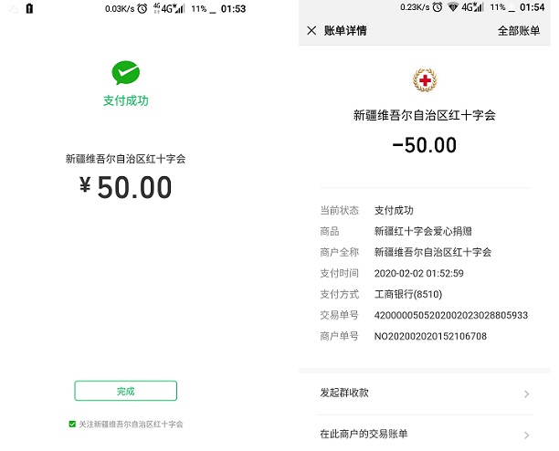 2月2日,谭安明在浏览全国疫情信息时,浏览到“新疆维吾尔自治区红十字会”推送的爱心捐款信息。“有多大力,我出多大力。在疫情线上奋战的人有比我更艰难、更需要帮助的”,他心里没再考虑其他的,手中已经点开了“新疆维吾尔自治区红十字会”的“微信捐赠入口”,“50元”疫情专项捐款已经支付成功。