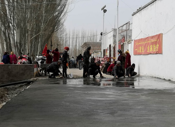 在450平米地面硬化过程中,“访惠聚”工作队出资购买了10吨水泥,辖区从事建筑村民免费提供两台搅拌机,4户有货车的村民免费帮忙运输砂石料,形成了美丽村庄建设齐出力的良好氛围。