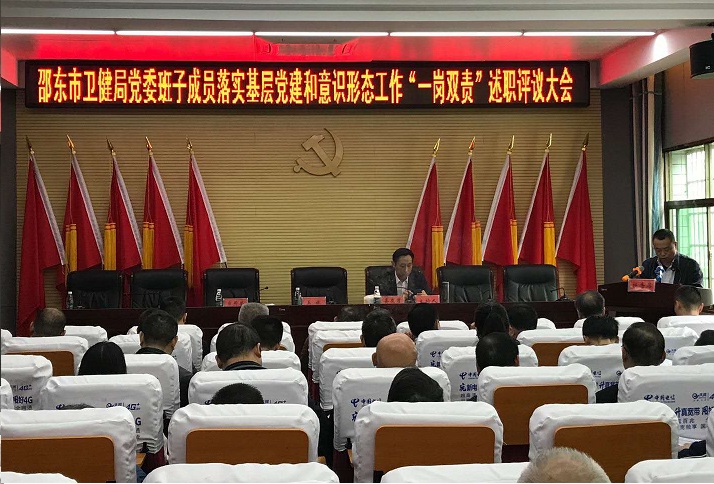 清风网邵阳讯(通讯员 兰静 王学强 )4月10日,邵东市卫健局召开2019年度局党委委员落实基层党建、意识形态工作“一岗双责”和党组织书记抓基层党建工作述职评议大会。会上,该局4名党委委员和32名党组织书记集中述职,亮成绩、摆问题、谈打算。