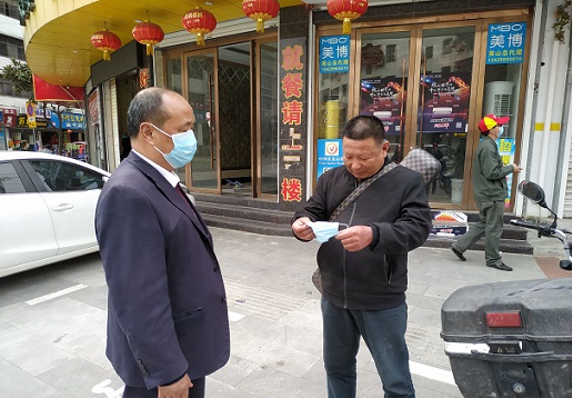 对未戴口罩的人员进行劝导和派发口罩和宣传防控知识,向居民广泛宣传要严格坚持外出佩戴口罩,正确佩戴口罩和勤洗手,养成良好卫生习惯,共同筑牢社区疫情防控第一道防线。