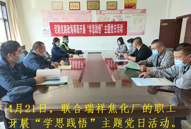 4月21日,尼勒克路政海事局组织局党员干部职工和瑞祥焦化厂的党员职工们联合开展了别开生面的“学思践悟”主题党日活动。局干部结合“不忘初心、牢记使命”主题教育,向瑞祥焦化厂的职工们宣讲了习近平新时代中国特色社会主义思想、社会主义核心价值观和习近平总书记对交通运输高质量发展提出的新要求、新任务等内容,共同学习了《公路法》、《公路安全保护条例》、《货运车辆超限超载管理规定》等与行业发展紧密相关的公路法律法规。局党支部书记强调要深刻领会习近平新时代中国特色社会主义思想的精髓,做到真信、真学、真行,学以致用、见诸行动。瑞祥焦化厂办公室主任发言时提到,要在工作中乐于奉献,勇于创新,争创佳绩,同时,积极配合尼勒克路政管理局工作,不断规范货运车辆运输管理,严禁超限超载和抛撒物污染公路等违法违规行为,加强学习,增强从业人员的爱路护路意识,倡导绿色、安全、文明出行理念,自觉践行和弘扬社会主义核心价值观。