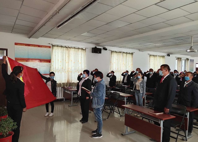 后盾单位党组成员龙雪蓉同志组织党员干部学习《党章》、讲“弘扬新时代奉献精神”主题党课、重温入党誓词、观看红色影片等教育学习活动,强化党员的党性意识,教育和激励党员坚定理想信念,弘扬奉献精神,在日常生产生活中当先锋、做表率。