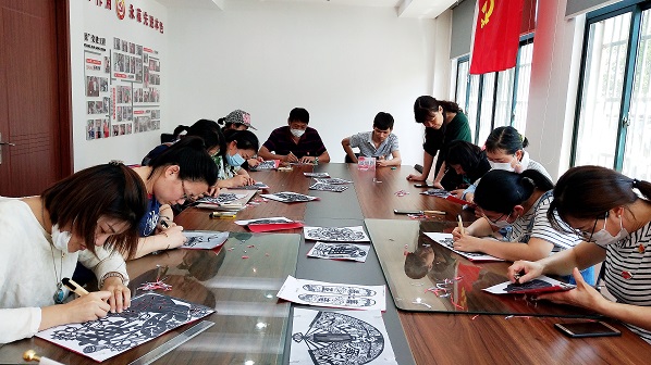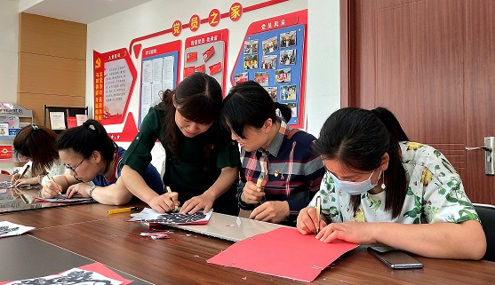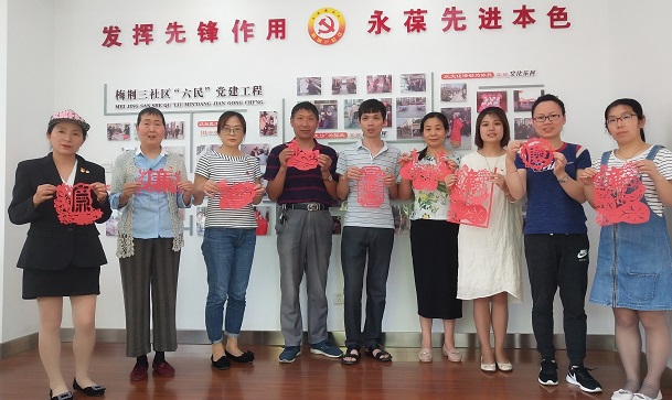 梅荆三社区党总支纪检委员朱春虹说:“看着自己的剪纸作品非常有成就感,一刀一剪的剪纸过程中,我感觉自己的初心再一次受到洗礼,制作剪纸的过程也是一次承诺的过程。”