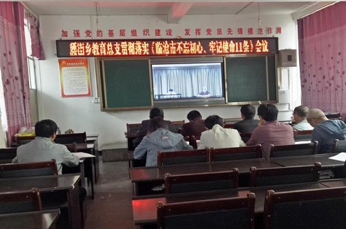 会议分为两个议程,首先,组织收看了《云南省第八次控辍保学视频会议》,其次,总支书记带领大家逐条逐句地集体学习了<临沧市不忘初心、牢记使命11条>。
