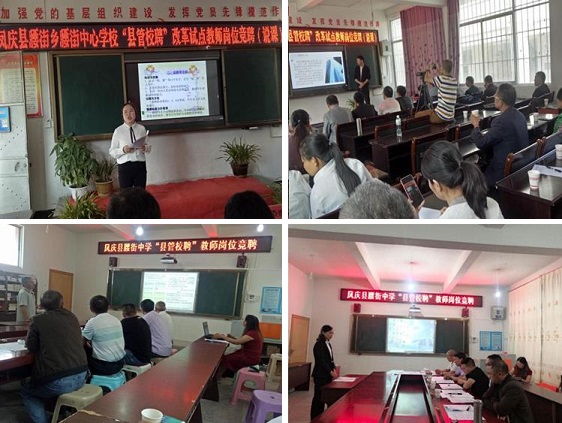 乡教育党总支坚持科学合理、公开规范、积极稳妥、以人为本、促进整体发展的工作原则;按照报名申请、资格审查、能力考试和业绩考核、公布竞聘成绩、组织考察、行文聘用的竞聘程序;采用说课、教学技能展示、即兴演讲加教学实绩考核的选拔竞聘办法,严密组织党员教师公开、公正、公平地积极参加岗位竞聘。