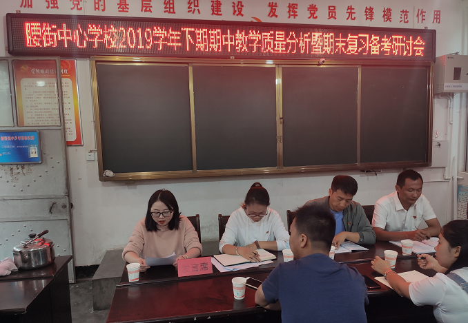 清风网讯(凤庆县腰街乡腰街中心学校支部委员会; 罗文福 李世云)2019学年下期期末阶段性教学水平诊断检测已经不到两个月,为了更好地做好下半学期教学工作,经中心校支委会研究决定于2020年6月18日晚召开腰街中心学校党支部主题党日——期中教学质量分析暨期末复习备考研讨会议。