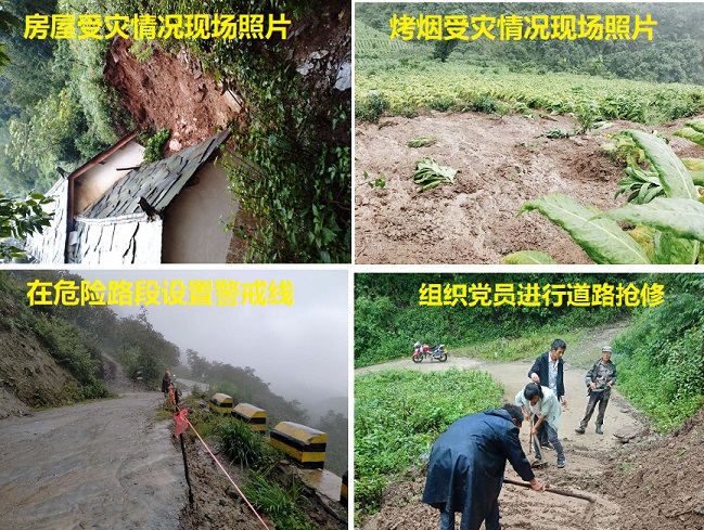 暴雨过后,新华乡出现了多处道路塌方中断、房屋受损、产业受灾的情况。尽管雨还在下,整个新华被笼罩在乌云之中,但我们总能在第一时间收到未来几天的降雨情况和灾情信息,通知村民防灾减灾;在第一时间组织人员进行抢修,恢复公路正常通车;在第一时间到民房受灾农户家中拉警戒线,采集灾害现场照片,帮助灾民申报民房保险;在第一时间到地质灾害监测点进行察看,防止重大灾害的发生;在第一时间到田地里查看烤烟受灾情况,帮助申报烤烟自然灾害保险。如此种种,旨在确保人民的生命和财产安全,把自然灾害程度降到最低。在这些到处忙碌的身影中,绝大多数是共产党员。他们虽然没有带着党徽、袖标,但他们肩上扛着共产党人的责任和担当。