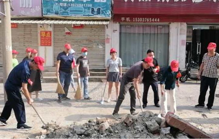 活动中,80多名在职党员,与社区居委会党员志愿者一起,带着铁锹、扫帚等工具,分五组,冒着高温酷暑,清洁社区部分背街小巷、卫生死角的环境卫生,清除绿化带里的杂草和垃圾,铲除墙壁上、电线杆上的各种“牛皮癣”等。