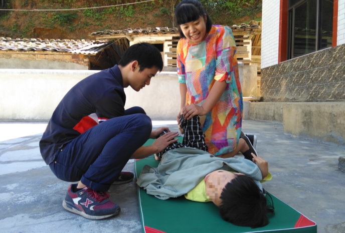 永安市特殊教育学校党支部根据学生工作需要和残疾学生不同需求成立若干个以1名党员为小组长、多位骨干教师为组员的送教上门爱心服务小分队,一个小分队定向帮扶1-3名重度残儿,打造“1+N”送教模式。在送教过程中,党员教师带领组员教师深入残疾家庭,通过摸底、调查、家长访谈、了解送教对象的具体情况,并通过评估,分析残疾损伤程度,有针对性地确定教学内容和康复方案。在这些送教的对象中,大部分是脑瘫、肢残以及智力障碍程度较重的孩子,不仅要教授一些简单的文化知识,还要针对他们的身体状况进行康复训练,教授家长居家护理和康复的知识。在对残疾孩子有了深入的了解后,送教分队形成同一组人员固定服务同一对象的模式。这样,不仅有利于党员教师了解送教孩子的身心特点,与他们愉快相处,还能根据送教孩子不同的身心缺陷,开展个别化训练。经过党员教师坚持不懈的送教和有针对性的训练,送教残疾儿童在生活自理、学科知识等方面都有了很大的进步。看到残疾孩子和家长们的笑脸,党员教师们觉得付出是十分有意义的,更坚定服务残疾儿童的信念。