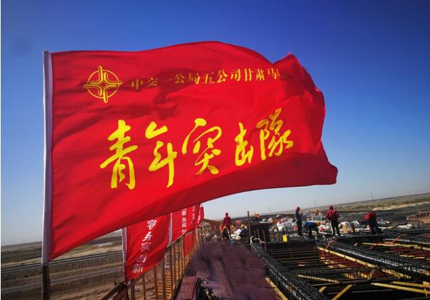 鲜红的党旗在甘肃马桥公路二标工地上迎风飘扬。这是党员先锋队的旗帜,也是有着红色基因的中交一公局集团建设者的精神底色,在河西走廊彰显出新时代的风采。